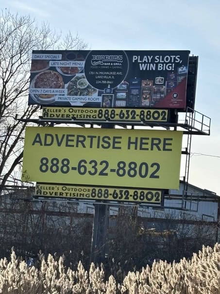 This billboard is on: Route 173 just west of Route 59 Located on East side of billboard Visible traveling West on IL-173 (Actual address is: 840 IL-173 Antioch IL 60002 - in parking lot of Pedersen Marine)